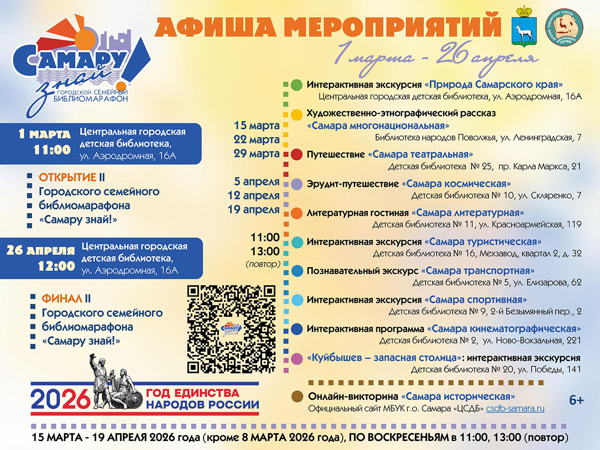 Афиша мероприятий в рамках городского семейного библиомарафона «Самару знай!»