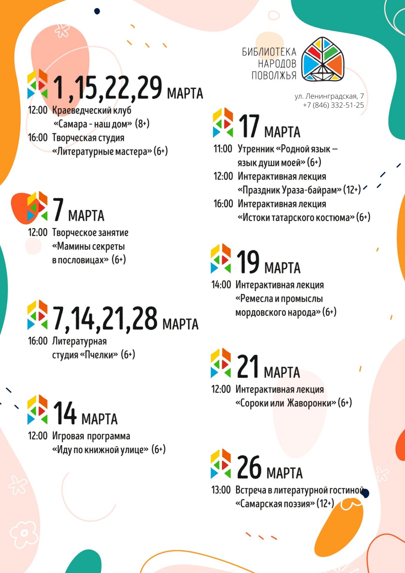 Детские библиотеки Самары » Афиша » Афиша мероприятий библиотеки народов Поволжья на март